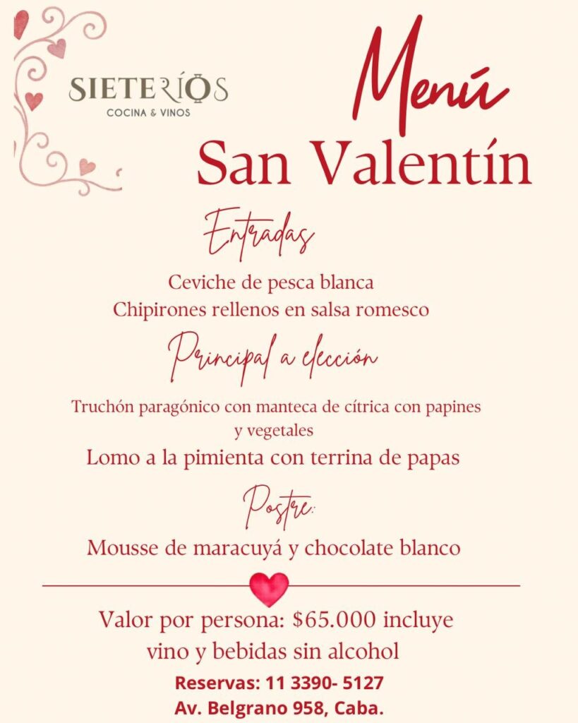 - Menú San Valentín: Cena de 4 pasos + 4 etiquetas de vino. Música y vino. $40.000